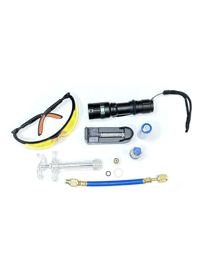 Набор применяется для поиска утечек хладагента в системе кондиционирования автомобилей, работающих на хладагенте R134A.