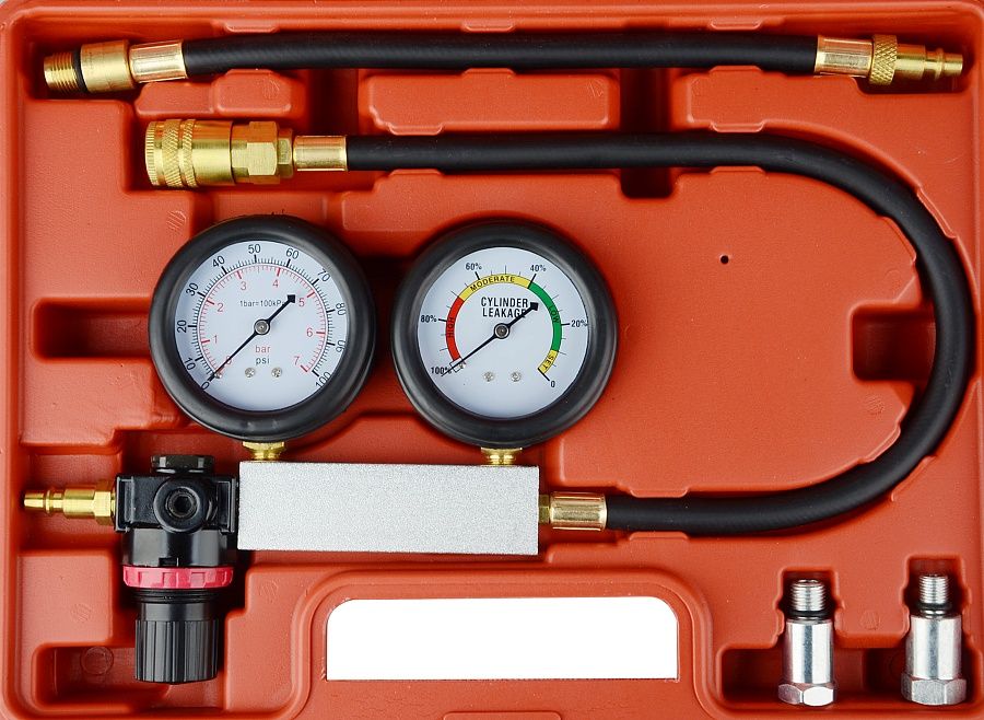 Представляет собой специальное приспособление с двумя манометрами при помощи которого можно выявить целый ряд таки неисправностей как, плотность прилегания клапанов, целостность прокладки головки блока цилиндров, выявить трещины в стенках цилиндров, проверить плотность прилегания поршневых колец двигателе внутреннего сгорания.